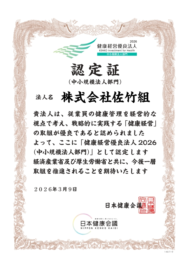 健康経営優良法人2026(中小規模法人部門)に認定されました。
